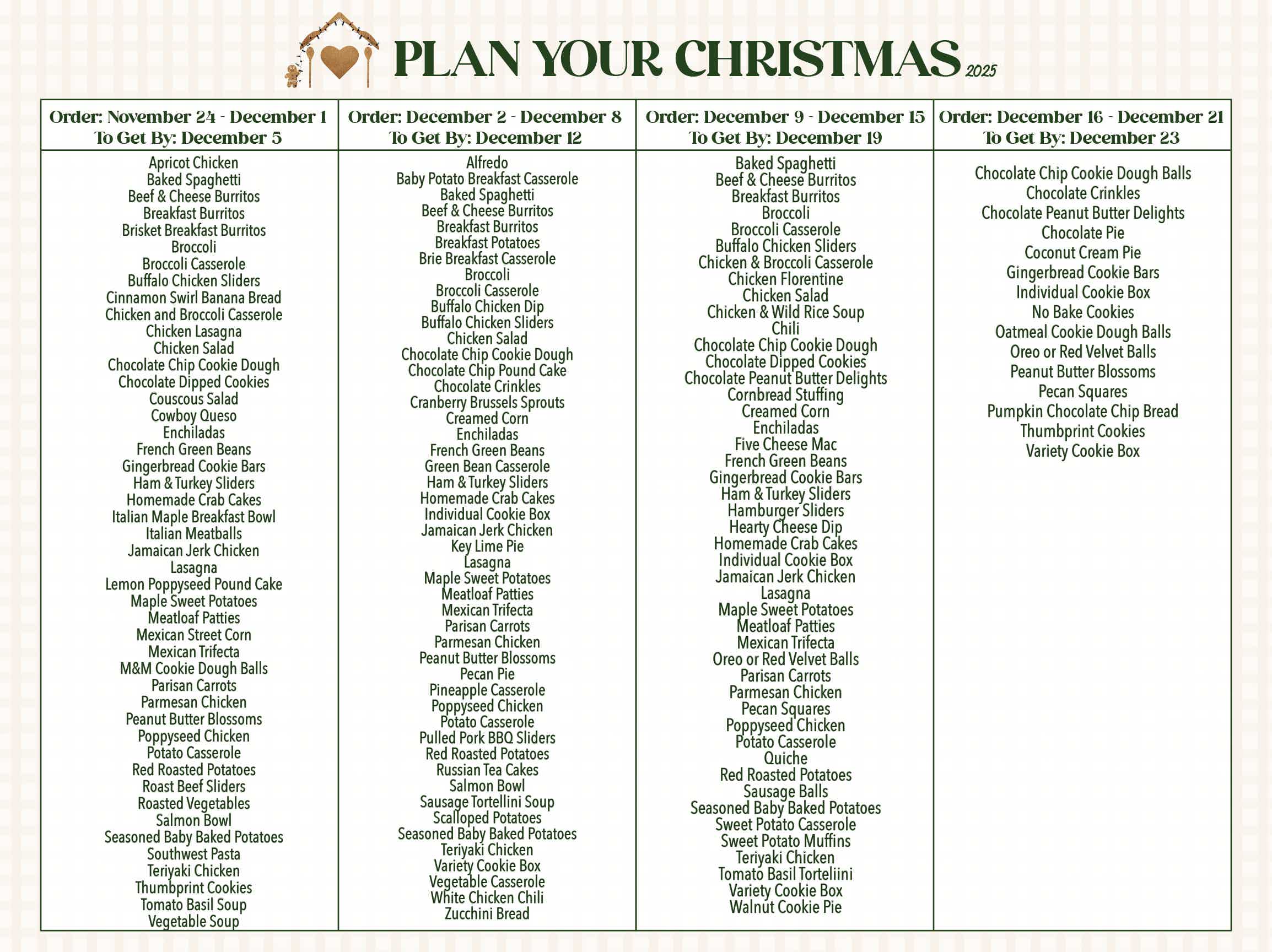We know you are still prepping for Thanksgiving this week, but we wanted to give you as much time as possible to prepare. So without further delay, let’s get into the December menus and schedule!