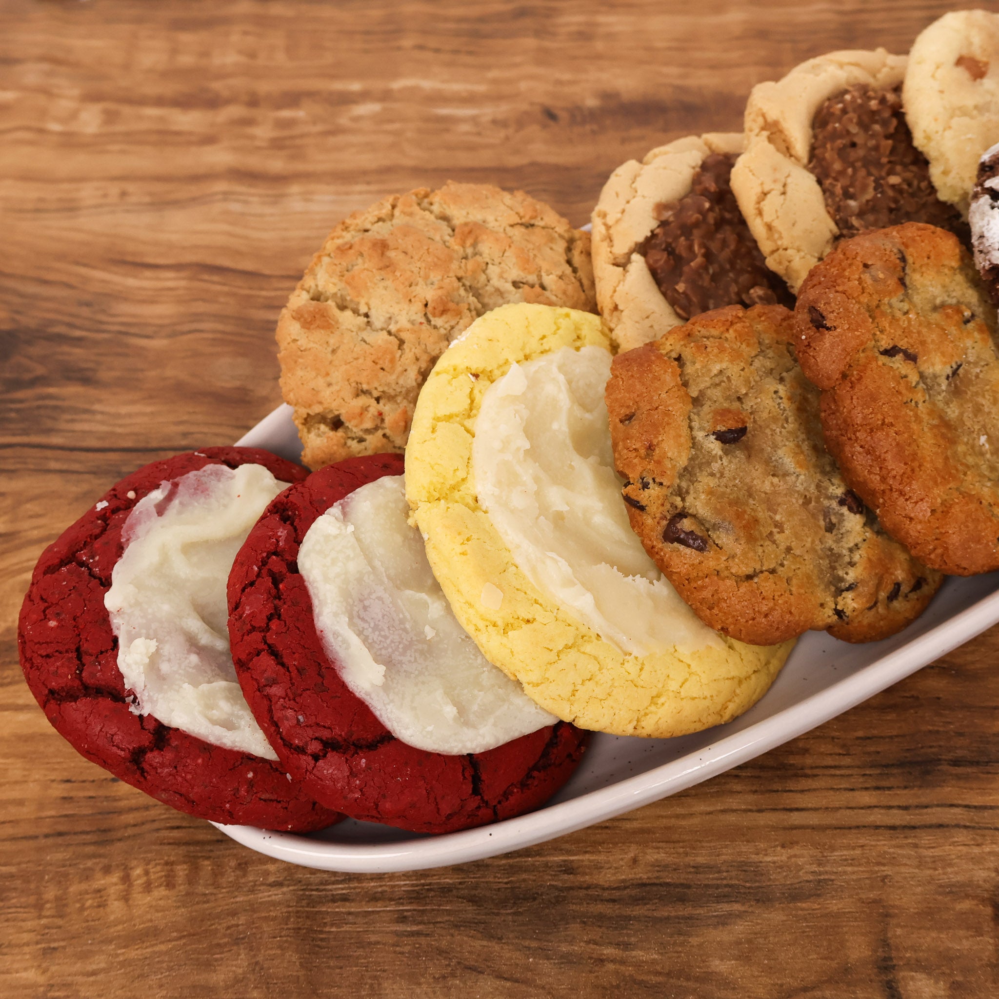 - A dozen individually wrapped jumbo cookies, including a semi-random assortment of: